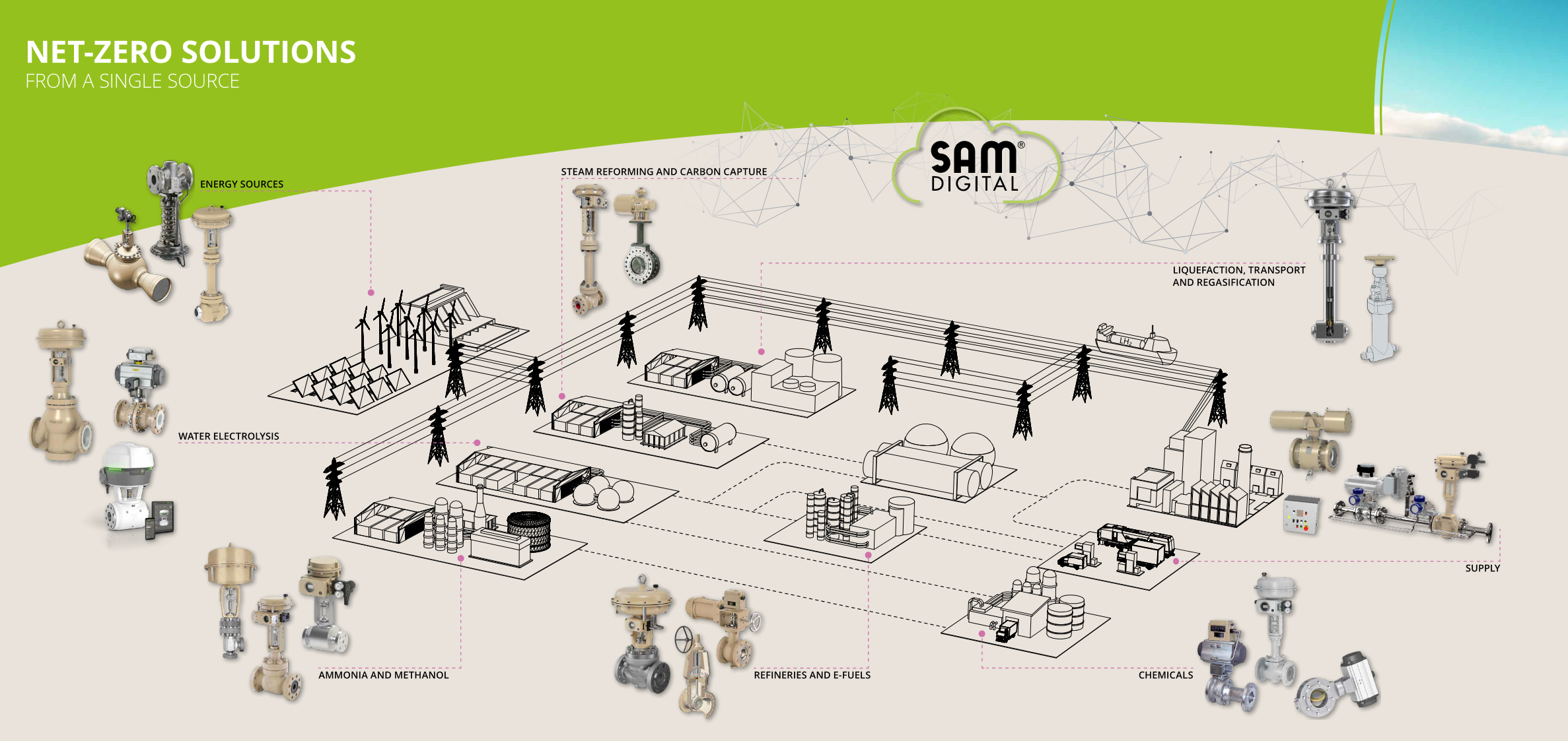 Our modular valve systems offer exceptional flexibility with self-operated, pneumatic, or electric actuation options, and support for various pipeline connections including flanged and sandwich-style designs. Paired with proven valve accessories and smart components like integrated electric actuators and process controllers, CVS solutions help streamline operations, minimize downtime, and enhance overall plant efficiency.